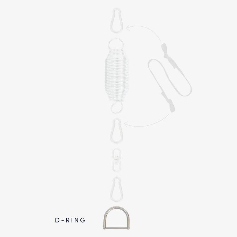 Der D‑Ring hält den Stoff oben an der Aufhängung zusammen.