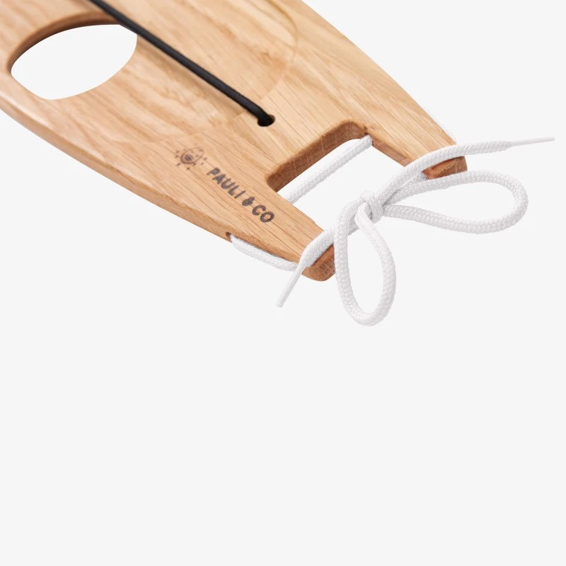 Es ist aus hochwertigem, massivem und nachhaltig angebautem Eichen- bzw. Eschenholz gefertigt, wurde fein geschliffen und mit einem besonderen Pflegeöl behandelt. Das Pflegeöl ist speichelecht, lebensmittelverträglich und für Kinderspielzeug zertifiziert.
