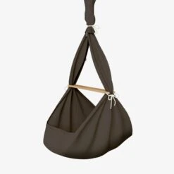 Das Distanzbrett hält den Wiegenstoff auseinander. Du kannst es in der Höhe versetzen und damit einstellen, wie weit die Wiege geöffnet sein soll.