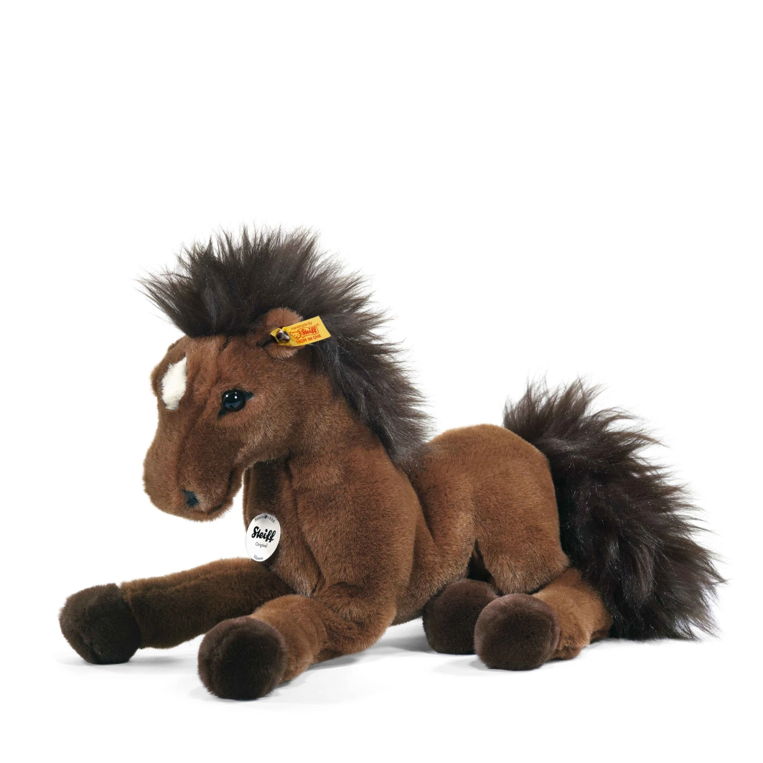 Schlenker-Hannoveraner Hanno ist 35 cm groß und ist ein treuer Freund für alle Kinder. Hanno’s Pferde Fell ist braun und aus streichelweichem Webpelz. Der wilde Hanno freut sich schon darauf, dass Kinderzimmer auf den Kopf zu stellen und wilde Abenteuer zu erleben. Pferd Hanno hat eine besonders angenehme Granulatfüllung. Dadurch wird das Fühl- und Spielerlebnis verstärkt.