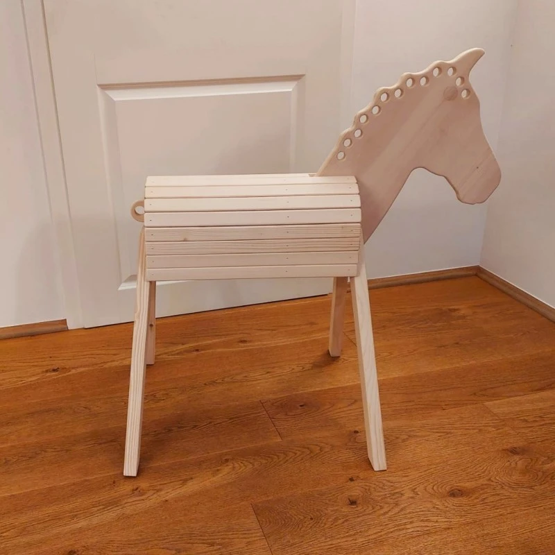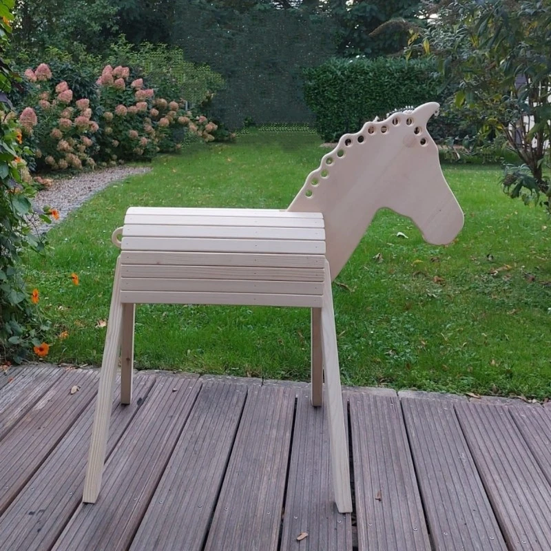Das zarte Pferdchen passt in nahezu jedes Kinderzimmer, kann aber auch im Garten platziert werden. Das Reiten auf Holzpferd „Flocky“ macht nicht nur großen Spaß, sondern hat auch viele Vorteile. Es fördert die Liebe und Wertschätzung zu Tieren, verbessert das Gleichgewicht und die Koordination und fördert die Kreativität im Rollenspiel.