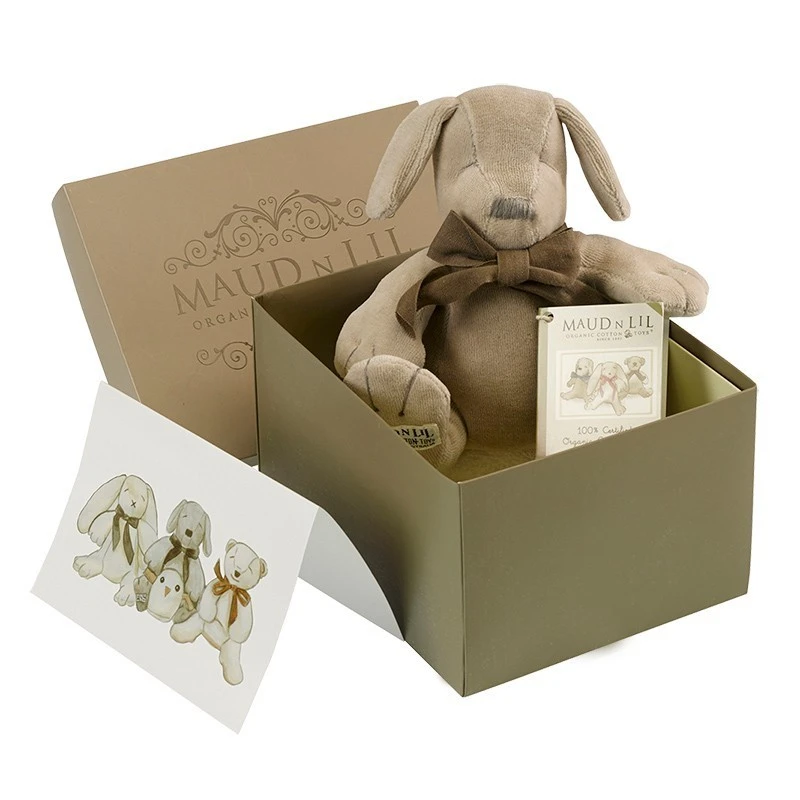 Dieser weiche Schmusehund aus Bio-Baumwolle ist das ideale Geschenk zur Geburt oder Baby-Shower.