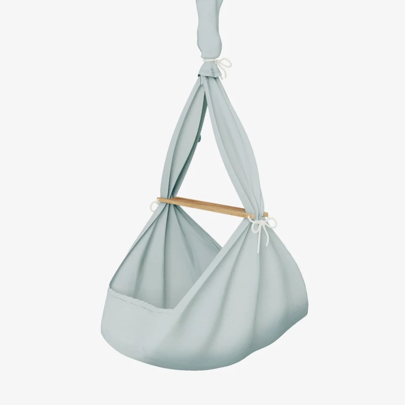 Gefertigt wird die Federwiege aus bester Jacquard-Baumwolle.