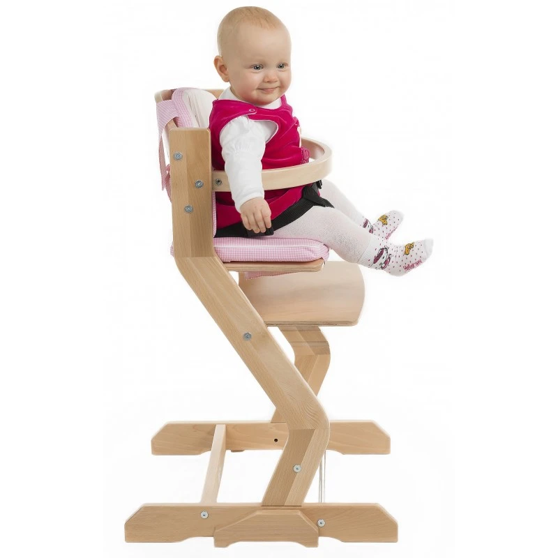 Hergestellt ist der Kinderhochstuhl aus massivem Buchenholz und garantiert so lange Haltbarkeit und hohe Standfestigkeit. Er ist extrem kippsicher und zu allen Seiten ergonomisch entwickelt.