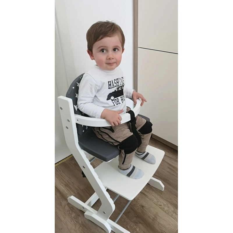 Der Brustbügel und der Tisch sind nicht im Lieferumfang enthalten. Sie können separat bestellt werden! Ebenso sind viele schöne Polster für den Hochstuhl erhältlich.