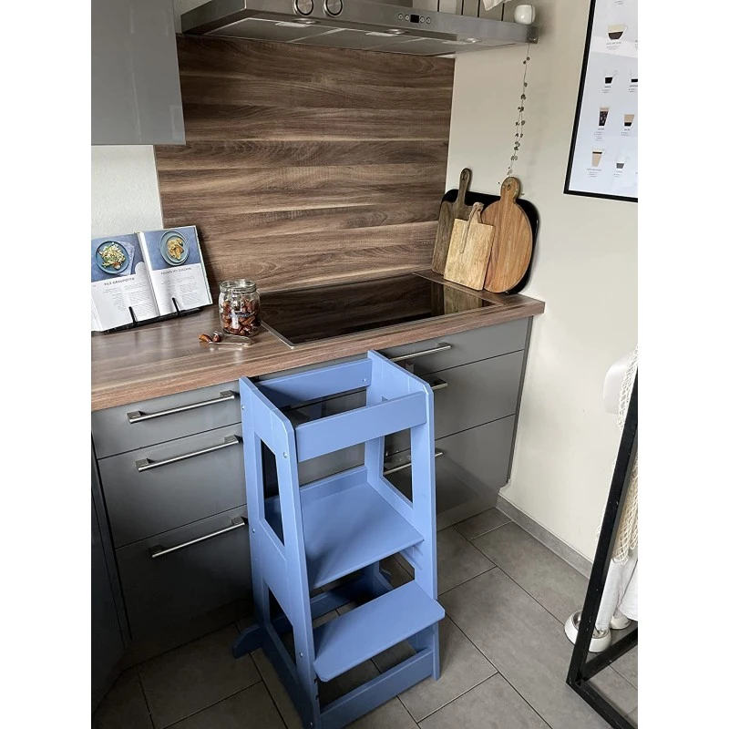Der Lernturm wurde so konzipiert, dass er Dein Kind näher an die Küchezeile oder den Tisch bringt und es so schon früh soziale Interaktionen mitbekommt und von Dir lernen kann.