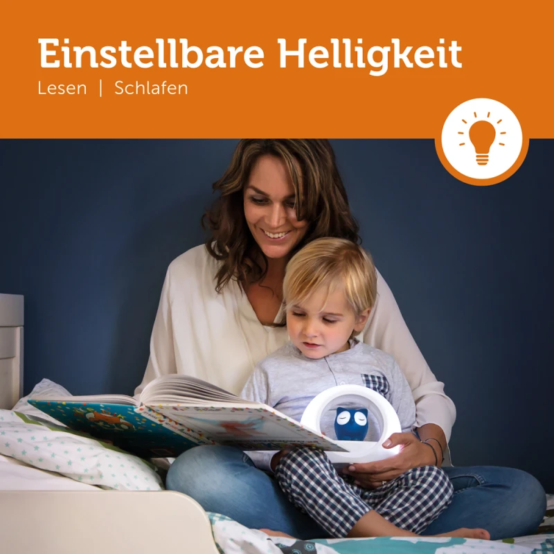 LOU – das ist eine stilvolle und praktische Kinderzimmerleuchte und zugleich ein sanftes Nachtlicht. Das Besondere daran: Ring und Eule leuchten unterschiedlich stark. Der Ring verfügt über ein helleres Licht, das ausreicht, um zum Beispiel den Pyjama anzuziehen oder um ein Buch zu lesen. Die Eule hingegen spendet gerade so viel Licht, dass sie die Dunkelheit vertreibt und ist deshalb das ideale Nachtlicht. Die Lichtstärke lässt sich bei beiden Elementen dimmen. Beide Lichter verfügen über eine automatische Ausschaltfunktion: Das Kind schläft bei Licht ein, während des Schlafes jedoch ist das Zimmer dunkel oder nur ganz sanft durch den Schein der Eule erleuchtet.